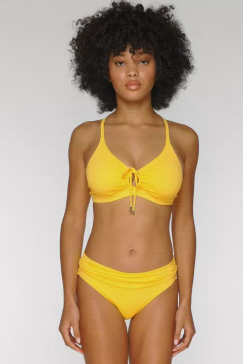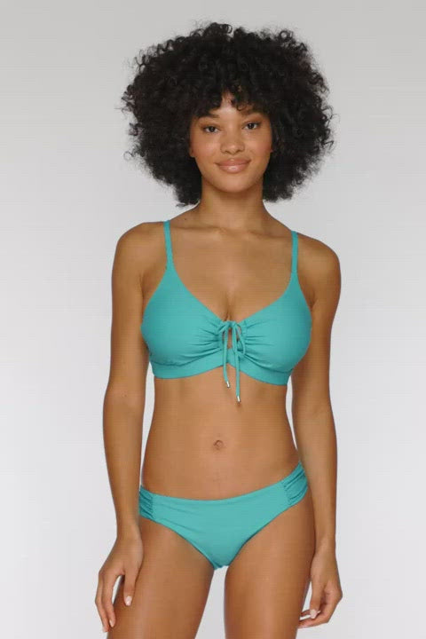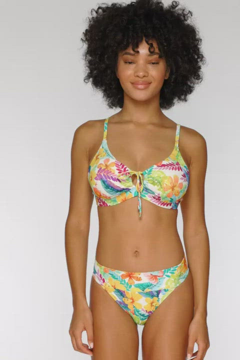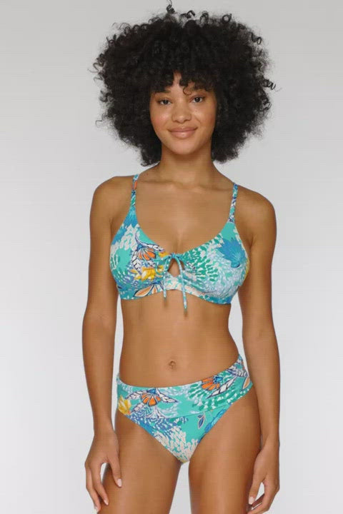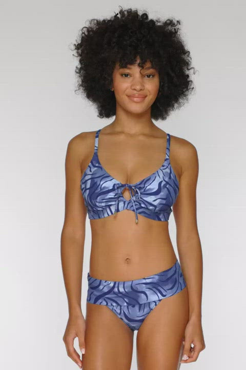 This top is equipped with a keyhole for adjustable coverage. Also featuring an underwire and removable cups for support, adjustable straps with a j-hook and a hidden bra closure in the back. Coverage: Moderate. *Bottom sold separately. Fabric Content: 83% Nylon, 17% Spandex