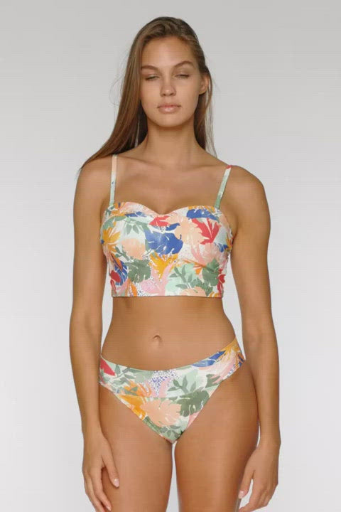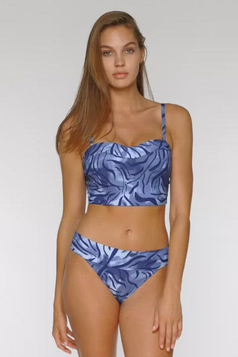 The Waverly Bandeau fits like your favorite crop top! Removable straps for a seamless tan and a silicone strip to keep everything in place make this top a summer essential! Featuring molded cups and a built-in shelf bra with soft picot elastic. Coverage: Moderate. *Bottom sold separately. Fabric Content: 83% Nylon, 17% Spandex