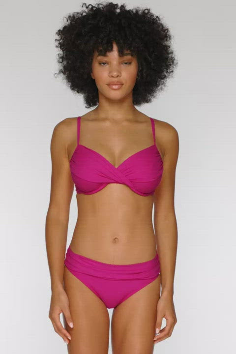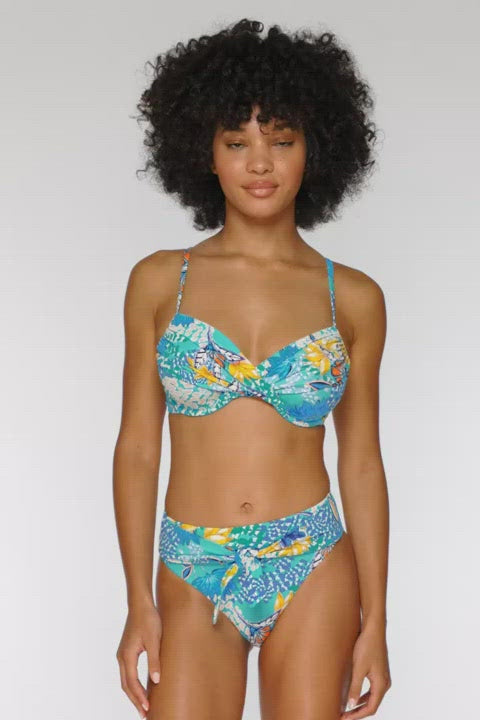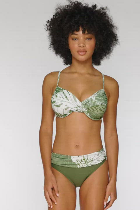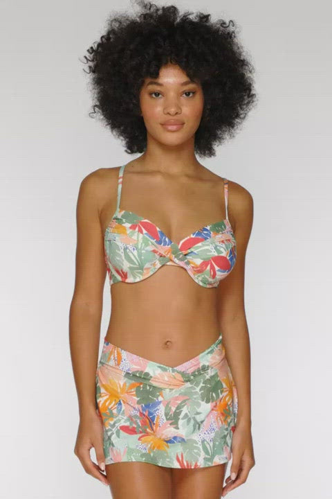 The Crossroads Underwire has a cross front sash detail for modesty and an underwire for support. Also featuring a hidden bra closure and adjustable straps with a j-hook. Coverage: Moderate. *Bottom sold separately. Fabric Content: 87% Recycled Nylon, 13% Spandex