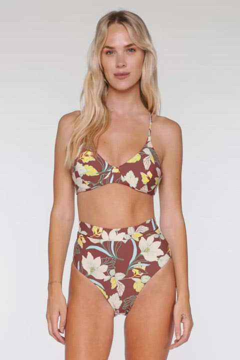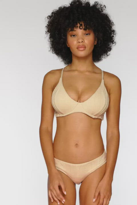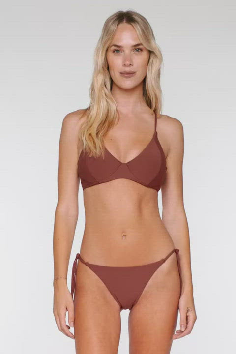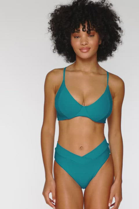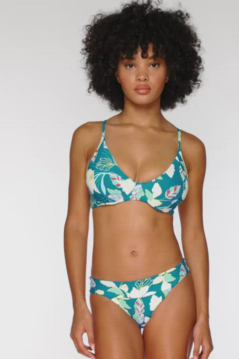 The Maya Underwire is supportive in all the right places. Soft side panels and an adjustable cross back detail will give you the perfect fit! Features include removable cups and matching colored lining. Coverage: Moderate. *Bottom sold separately. Fabric Content: 87% Recycled Nylon, 13% Spandex