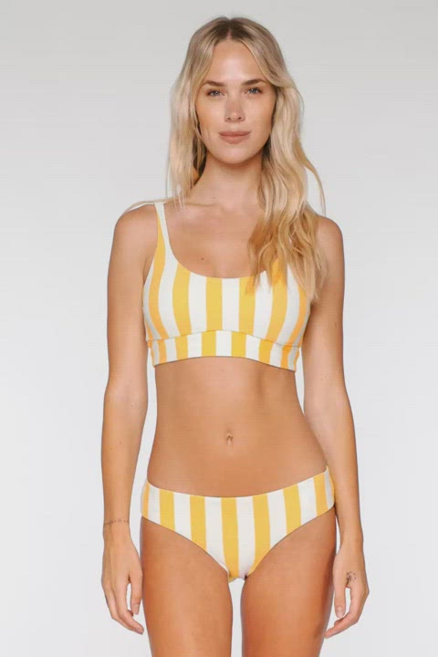 The Hazel Hipster features a scrunch rear detail with slightly cheeky coverage, clean finished seams and a smooth simple front. You can never have too many versatile bottoms! Reversible. Coverage: Moderate. *Top sold separately. Fabric Content: 87% Recycled Nylon, 13% Spandex