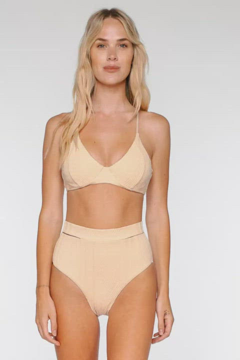 Super high waist with a sassy waistband tie, the Cora Tie Back is the bottom you never knew you needed. Featuring a high leg, and a soft waistband that ties in the back. Coverage: Classic. *Top sold separately. Fabric Content: 92% Recycled Nylon, 8% Spandex